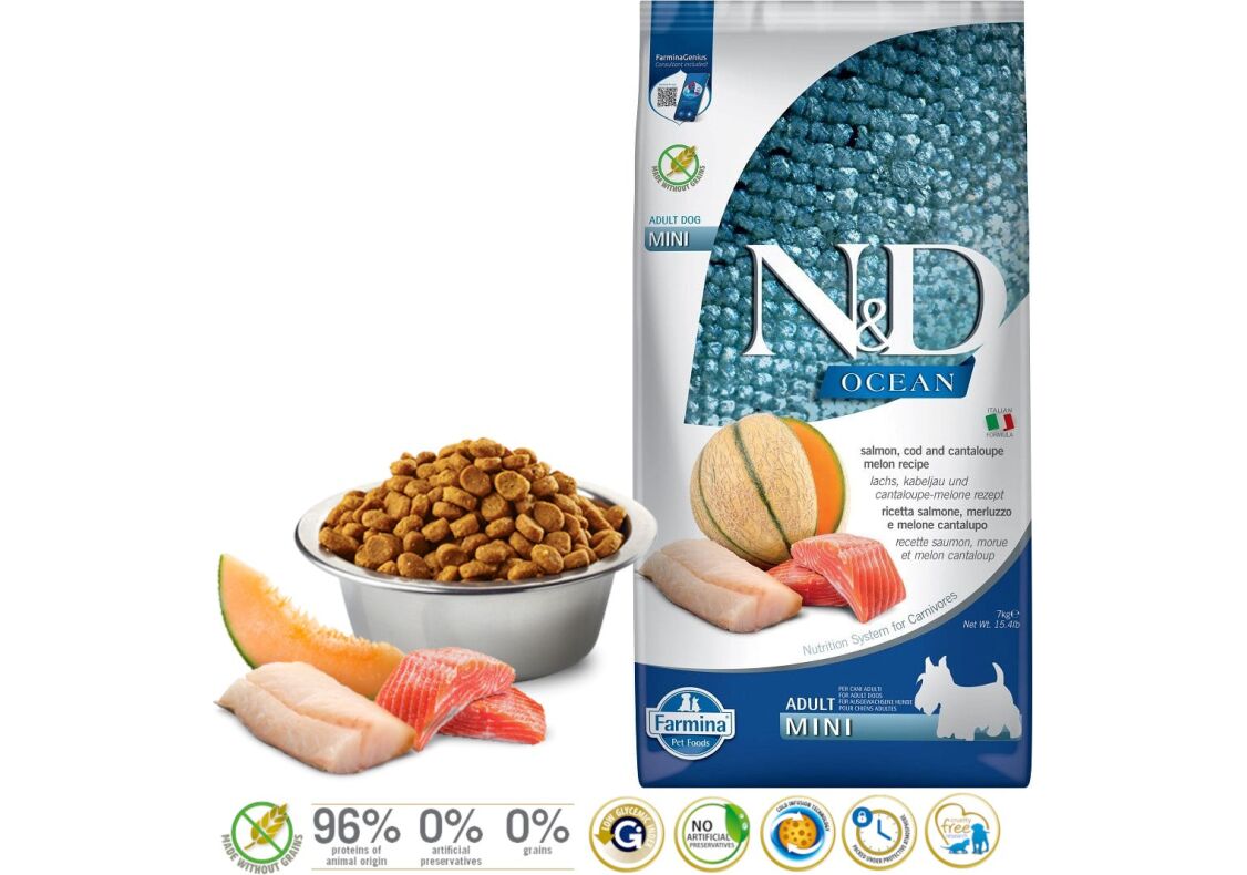 Farmina N&D Ocean Dog Salmon, Cod, Cantaloupe, Melon Adult Mini - dry dog food - 7 kg